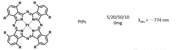 金属酞菁类荧光材料为绿色固体,易溶于有机溶剂,吸收/荧光波长位于近红外区,在荧光成像,光声成像,核磁共振成像,光热治疗,光动力学治疗,声动力学治疗以及三重态-三重态湮灭上转换(TTA)等领域均具有广泛的应用前景。