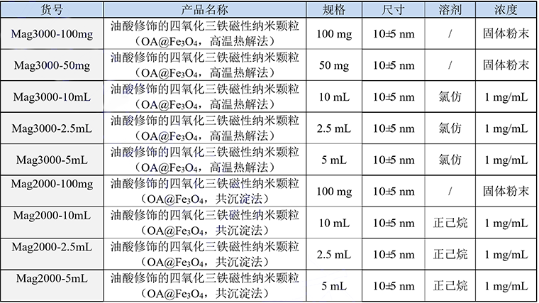 Suzhou Beike Nanotechnology Co., Ltd. Improves the quality of oleic acid-modified magnetic Fe3O4 nanoparticles (OA@Fe3O4), which have excellent magnetic properties, dispersion and stability, and can be widely used in nanoprobe construction, magnetic resonance imaging and molecular imaging, Magnetic hyperthermia, drug carrier and integrated research of targeted diagnosis and treatment, etc. OA@Fe3O4 nanoparticles are oil-soluble and can be dispersed in solvents such as cyclohexane, chloroform, tetrahydrofuran, etc., used to dope oil-in-water nanoemulsions, modify nanoliposomes, and construct magnetic nanomedicine. The magnetic Fe3O4 nanoparticles modified with oleic acid prepared by the high-temperature pyrolysis method have stronger magnetic properties and more uniform size.