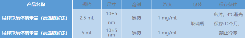 Suzhou Beike Nano Technology Co., Ltd. Improves the quality of oleic acid modified manganese-zinc ferrite nanocrystals (prepared by high-temperature pyrolysis), with uniform size, excellent magnetic properties, dispersion and stability, and can be widely used in nano probes Construction, magnetic resonance imaging and molecular imaging, magnetic hyperthermia, drug carrier and integrated research on targeted diagnosis and treatment, etc. The oleic acid modified manganese zinc ferrite nanocrystals are oil-soluble and can be dispersed in solvents such as cyclohexane, chloroform, tetrahydrofuran, etc., used for doping oil-in-water nanoemulsions, modifying nanoliposomes, constructing magnetic nanomedicine, etc. .
