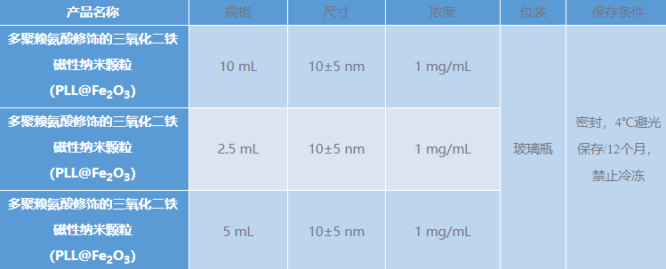 Suzhou Beike Nanotechnology Co., Ltd. improves the quality of polylysine-modified ferric oxide magnetic nanoparticles, which have excellent biocompatibility and biomolecule re-modification capabilities. Polylysine modified ferromagnetic nanoparticles (PLL@Fe2O3) are brown clarified hydrocolloids that have been filtered and sterilized with a 0.22 micron filter membrane, simple operation, easy to surface modification, easy to be swallowed by cells, and can be used for stem cells , Tumor cells, immune cells, etc. for animal experiment research on magnetic labeling and MRI tracing.