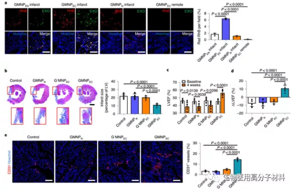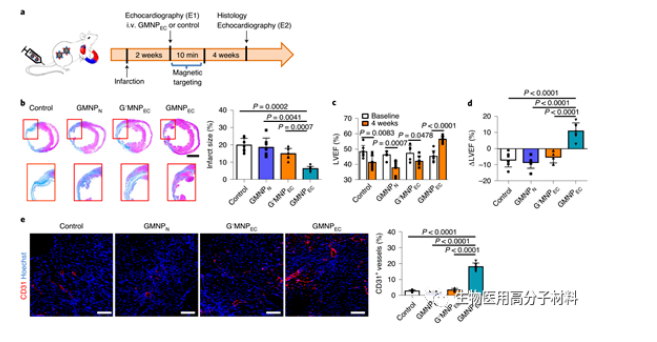 图5. 在心肌梗塞的大鼠模型中,静脉注射GMNPec后,心脏功能得到改善