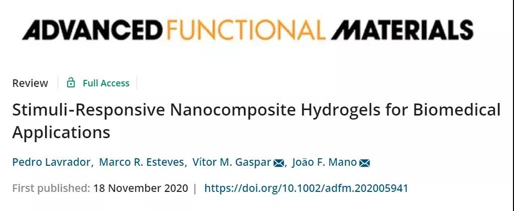 《AM》综述:刺激响应性纳米复合水凝胶在生物医用领域的应用