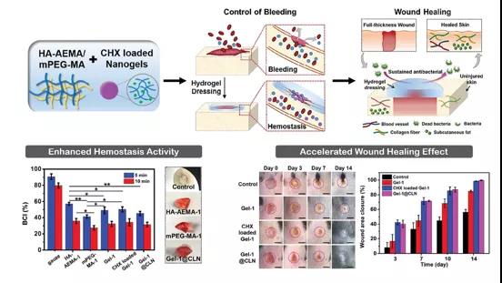 图3. 透明质酸基纳米复合水凝胶利用透明质酸酶在感染伤口时的过度表达。