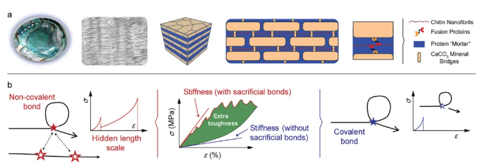 仿生材料工程可用于从润湿行为到光学和机械材料的许多科学领域的先进功能材料的设计。生物机械材料特别具有启发性,其在室温下从有限的一组构筑材料中组装并生长在水中,并具有刚度,强度和韧性以及轻巧性的独特组合。例如,木材,珍珠层,甲壳类表皮和蜘蛛丝等一些天然材料。其中成分的精准排列和平衡的分子能量耗散机制可以克服单个成分的不足,并导致材料具有超越添加剂的优异协同性能。它们构成了未来结构材料工程关于成型以及属性方面的范式,即使用可持续的建筑构件和节能途径,以及在实现新的高性能和高性能材料种类,以及在可移动技术中提高能源效率所需的轻质结构材料。