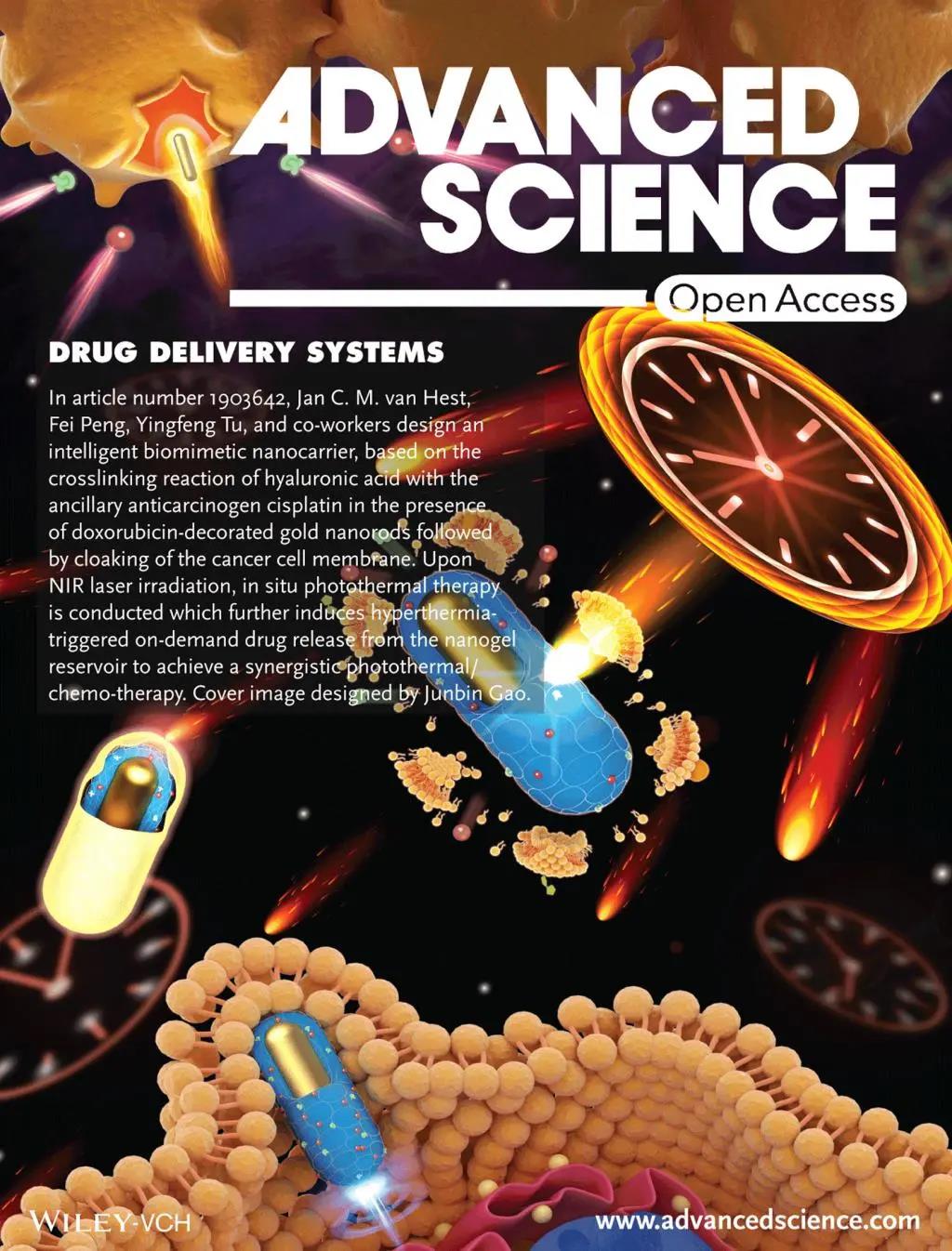 近日,南方医科大学涂盈锋教授团队在国际学术刊物Advanced Science(IF=15.804)发表了题为“Hyperthermia‐Triggered On‐Demand Biomimetic Nanocarriers for Synergetic Photothermal and Chemotherapy”的研究论文,并被选为当期的Frontispiece。该文主要开发了一种具有近红外光响应的仿生纳米平台用于协同的光热及化疗。