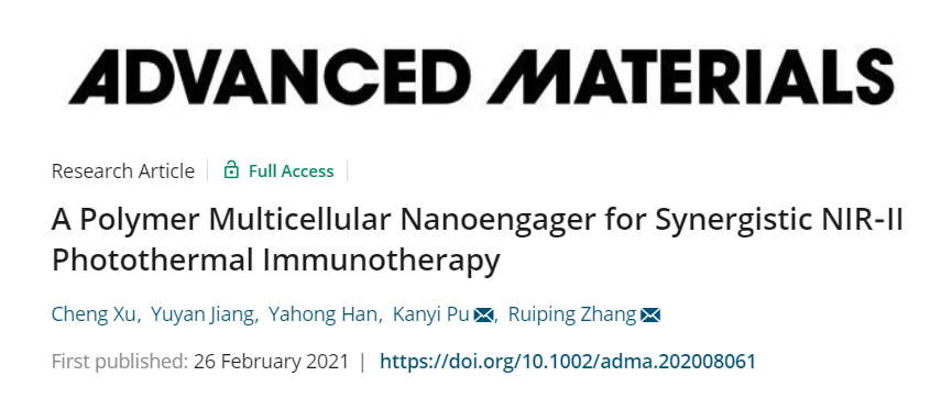 Cheng Xu, et al. A Polymer Multicellular Nanoengager for Synergistic NIR‐II Photothermal Immunotherapy. Adv. Mater., 2021.