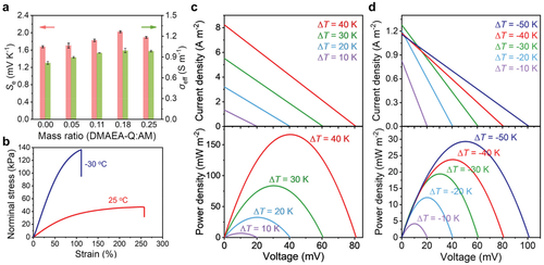Fig. 2 thermoelectric and mechanical properties of organic hydrogel thermal batteries.